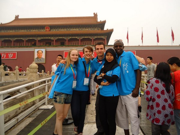 ![]() Sarah和“汉语桥”比赛的参赛选手们同游北京 |